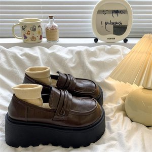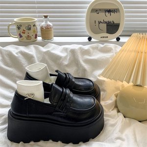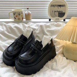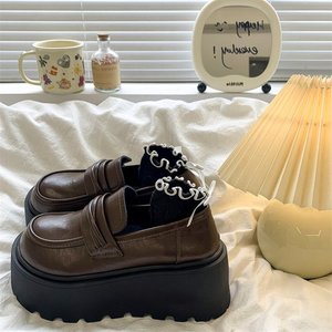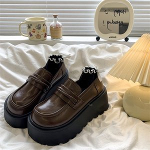 厚底スモールレザーシューズ女性用2025春新作スリッポンローファー英国風増量無地JKシューズ