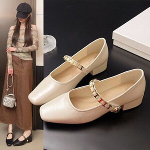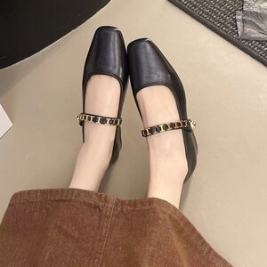 フランスのレトロな四角い頭のメアリー珍靴の女性の春のファッションチェーンの太さと浅い口の靴に合わせて、小さい靴を持っています。