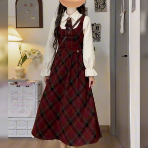 シングルスーツカレッジスタイル日本チェック柄サスペンダードレス女子学生ウエスト痩身ミドル丈サスペンダースカート