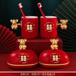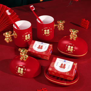 結婚洗面セット石鹸のコップと女性の持参金の結婚式の歯ブラシの口のコップは石鹸の結婚祝いの用品が好きです。