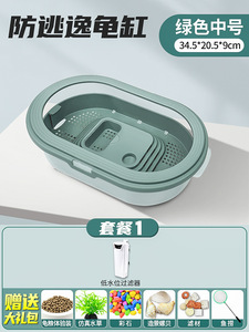 排水カメ盆地 ミディアムグリーン [無料の小さなカメ + 125G カメの餌 + 繁殖ギフトパック]