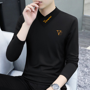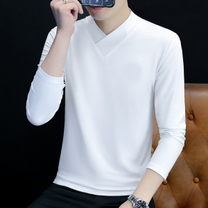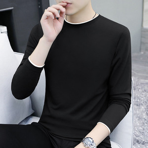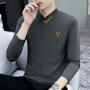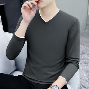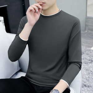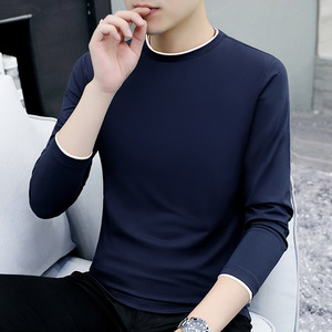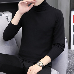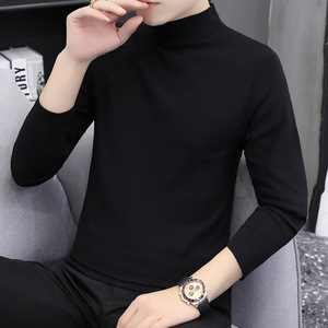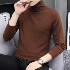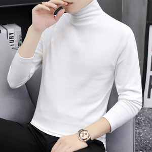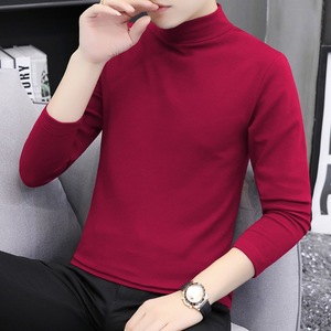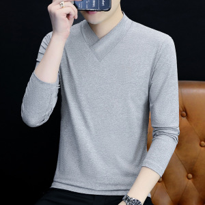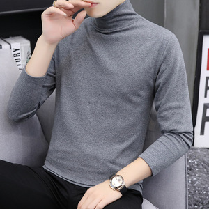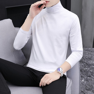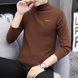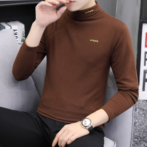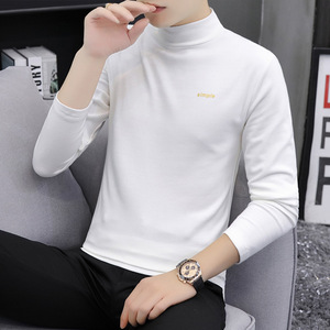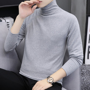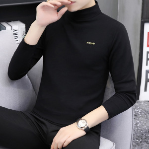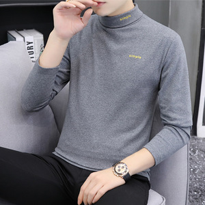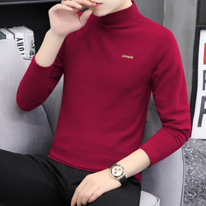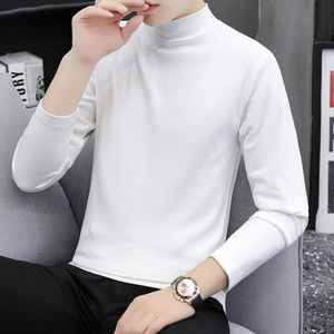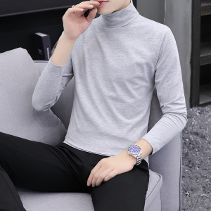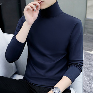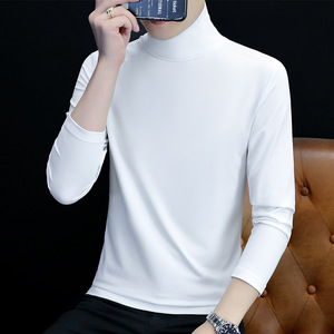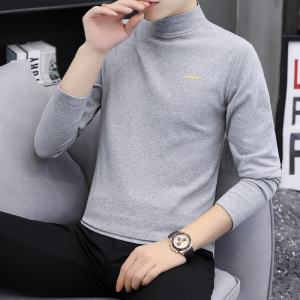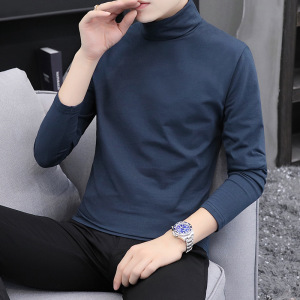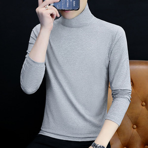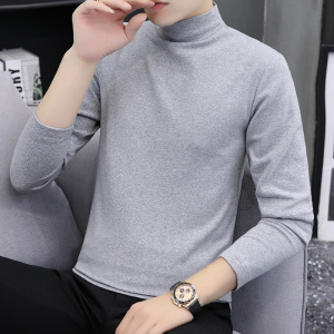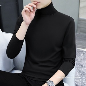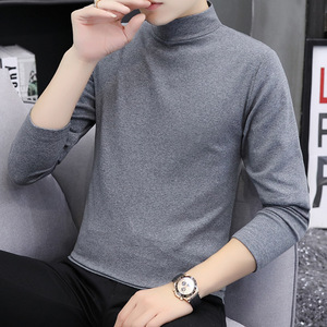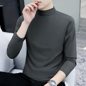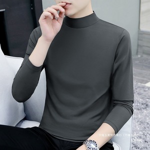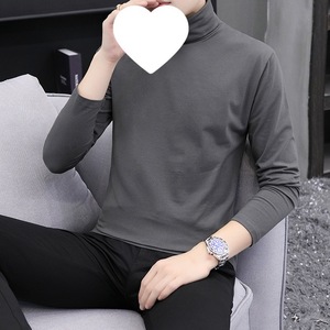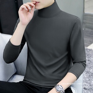 メンズ春秋新疆綿秋衣の中にファッションファッションの男性の半高襟の純色の中襟の純粋な長袖のtシャツを掛けます。