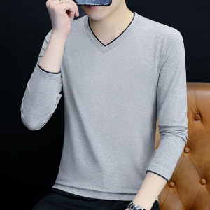 コントラストカラーのカーボングレー V ネック T191 スタイル