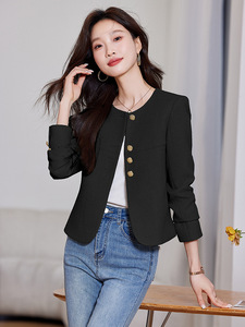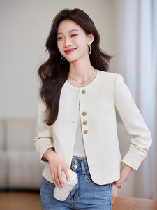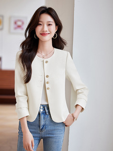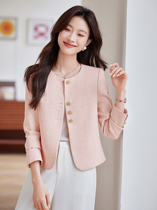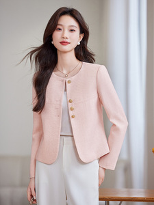 ピンクの小さい香風のコートの女性の春秋2025新型の気質の名媛の襟がないスーツの短いタイプの小さい上着