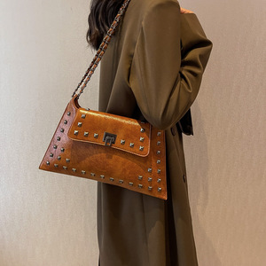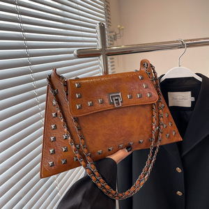 クロスボーダー女性2025春新作レトロリベットシングルショルダーバッグ質感チェーン高級感手提げショルダーバッグ