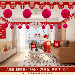 喜字拉花結婚室配置セット結婚男性側女性側屋根喜字ペンダントセット新居客間寝室
