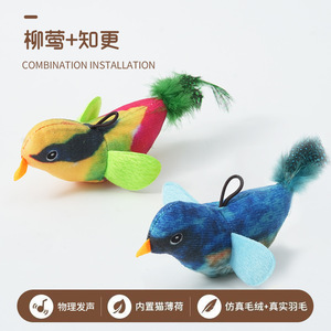 クロスボーダーの猫のおもちゃのシミュレーションの音の小鳥の爆発の本当の羽はぶら下がっています。