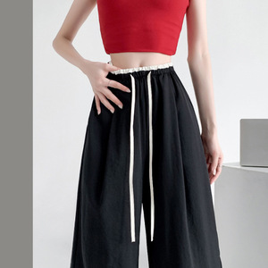 【オリジナル品質】白ズボン女性夏2025新型高腰レジャー運動広脚ズボン氷糸山本