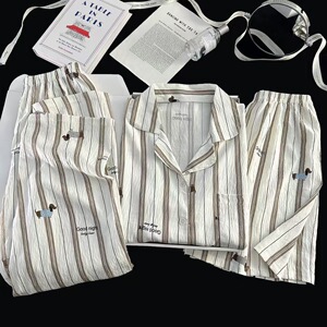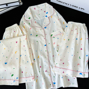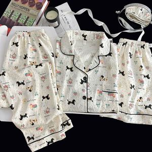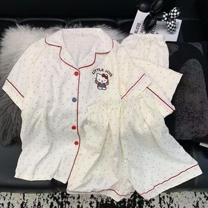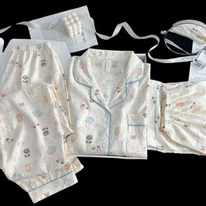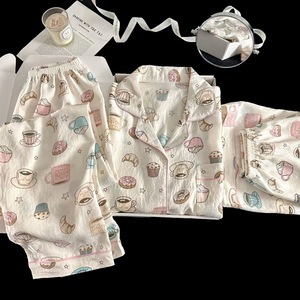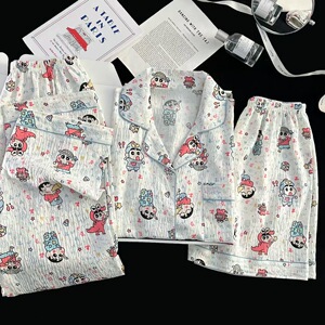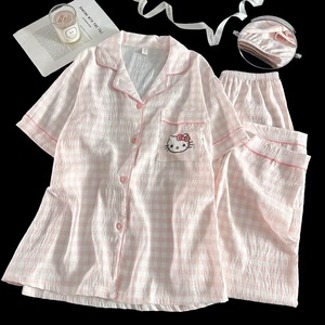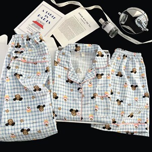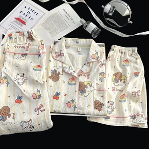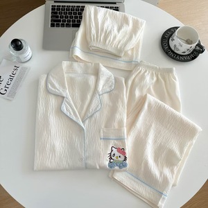春と秋のパジャマの女性のケイティのゆるい漫画の半袖の半ズボンの3つのセットのゆるい雲の綿の部屋の服のスーツ
