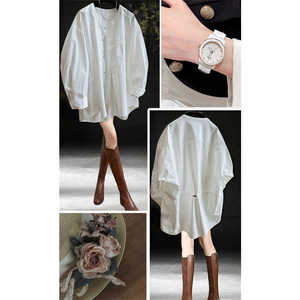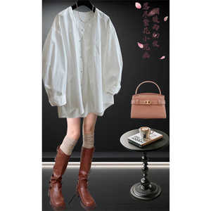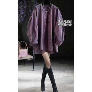 春秋韓系の怠惰な風は年齢を減らして超きれいな純色のシャツの上着の女性の太っている妹の大きいサイズはやせている小さいシャツを現します。