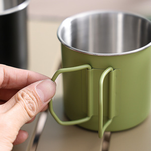 304ステンレス鋼屋外カップ折りたたみハンドルマグカップポータブルキャンプのピクニックキャンプカップカスタムロゴ