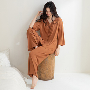 2025年新型モーダルコットンパジャマ女性7分袖カジュアル純色ズボン快適春秋家庭服薄いタイプ