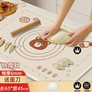 極厚シリコン [60×80cm 米白クマ] + 麺切りナイフ + 麺棒 + 収納袋