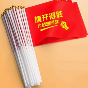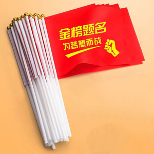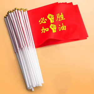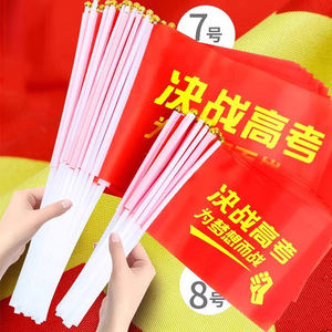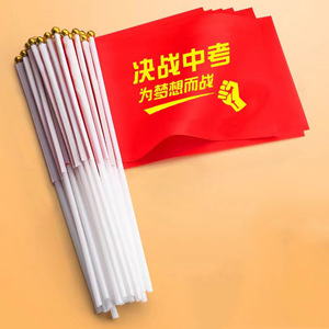 中考は頑張って手を振って旗を振って百日誓います。小旗を持っています。