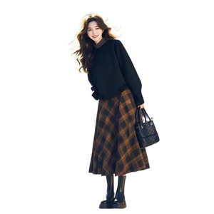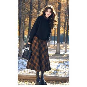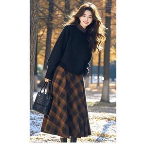 入冬搭配一整套2025新款小香风名媛撞色毛衣格子半身裙减龄套装女