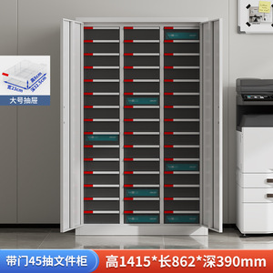 厚みのある扉付き2列30段引き出し