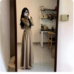 2025超火韓系小香風メリヤスワンピース春新作女装春着セットロングスカート