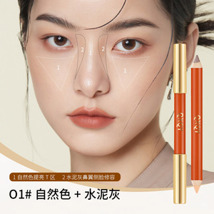 QXQY 立体双頭輪郭ペン、男性と女性用、自然に明るくし、鼻梁を修正し、長持ちし、汚れにくい輪郭スティック