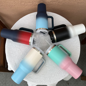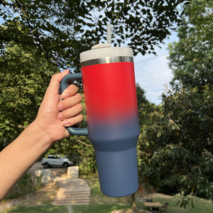 跨境二代40oz汽车杯吸管手柄大容量渐变保温杯冰霸水杯304不锈钢
