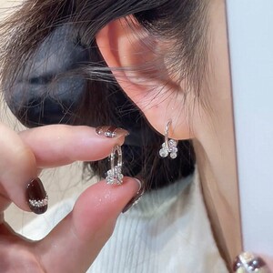 豪華で高級感のある銀色のジルコンの耳に小さなデザイン感があります。