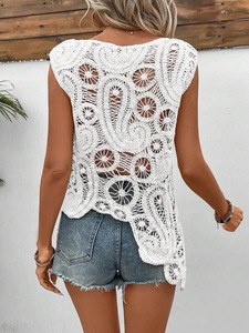 ヨーロッパとアメリカのニット不規則なかぎ針編み中空ベスト夏の新しいスタイルのアウターウェアカバーアップブラウスノースリーブデザイントップ