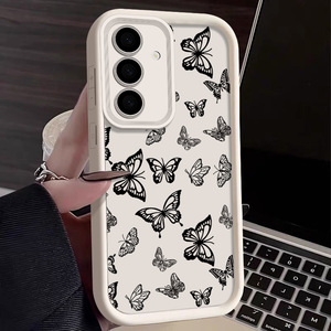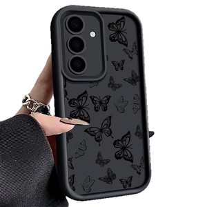 适用于S25ULTRA满屏蝴蝶手机壳三星A55黑色蝴蝶S22天眼阶梯保护壳