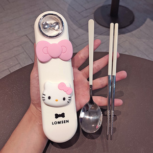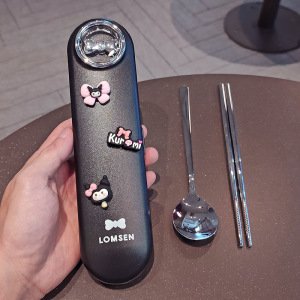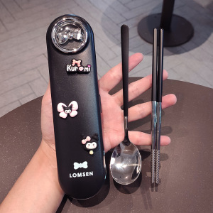 304 ステンレス鋼のポータブル食器 3 点セット箸スプーンセット子供と小学生のための収納ボックス食器