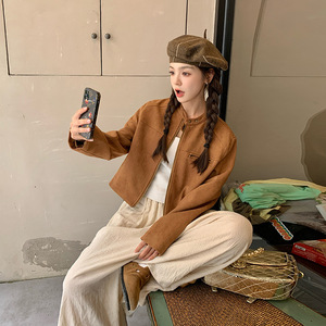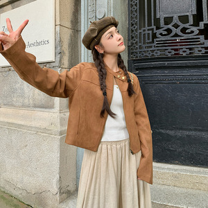 鹿革ジャケットレディースショート2025春新作ゆったりスリム気質オートバイカーディガントップ
