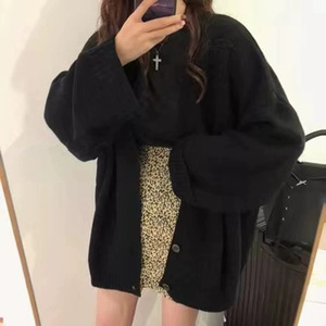 韩版秋冬慵懒风针织开衫纯色时尚休闲宽松百搭毛衣外套女通勤风