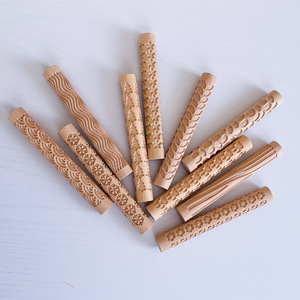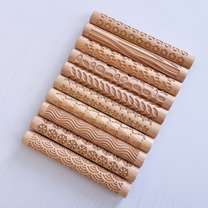 新しいブナ材エンボス麺棒、子供用彫刻パターン印刷粘土ツール、粘土ローリングスティック、粘土プレススティック印刷