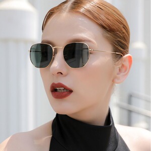 国境を越えた新型金属多角形サングラス女性欧米の流行の小さな枠が輝いているサングラスファッション眼鏡卸売り