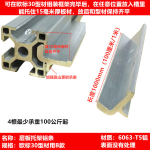 欧州規格30B棚受け【長さ1000mm×5枚】15mmの板を同一面に置くことができます。