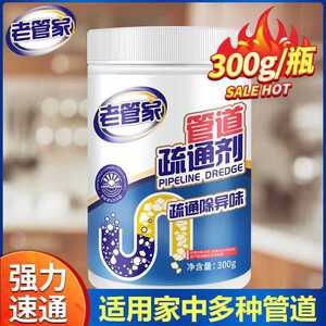 老家令配管疎通剤300g下水道剤トイレの髪の毛台所の油汚れが溶けて地面に漏れている