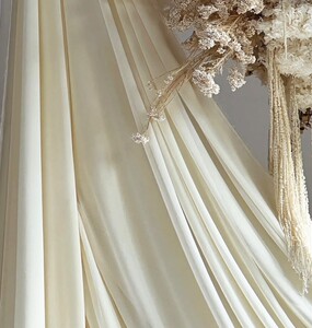 古典的な優しい仙気米黄色クリーム白透き通った感じのガーゼのカーテンの祝日の結婚祝いの背景生地