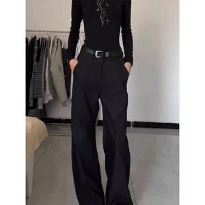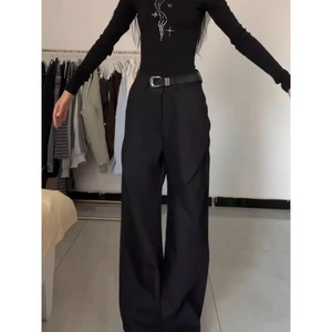 微胖mm美式黑色垂感西装阔腿裤子女春夏设计感小众直筒拖地休闲裤