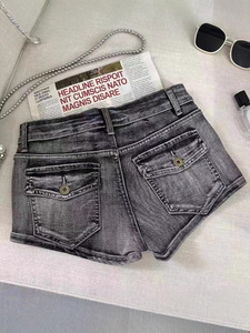 ホットガール向けのローウエストのレトロなウォッシュデニムショートパンツ、多用途のデザイン、ヒップカバー、痩身、新しい黒とグレーの肉をカバーするホットパンツ