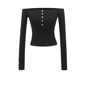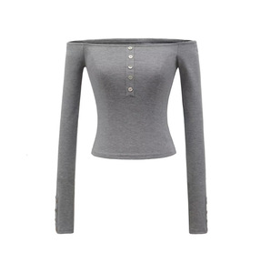 25 新しい夏の女性のアメリカンホットガールスタイルボタンダウンシャツインスリムフィットワンショルダーショート長袖 T シャツ