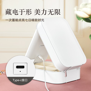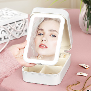 ミニ LED 化粧鏡バッグ充電式 3 色発光女の子ポータブルジュエリー収納ボックスミラー付き