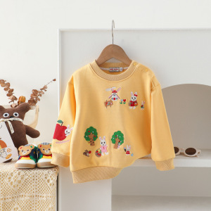 ミキ子供服春秋男女児漫画刺繍スウェットフリーストップス幼児長袖Tシャツカジュアル万能