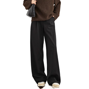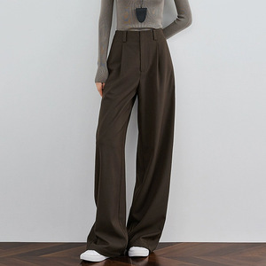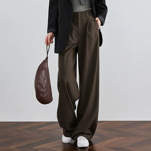 秋季新款陶棕色西装裤女连腰设计感长裤显瘦垂感拖地裤宽松阔腿裤