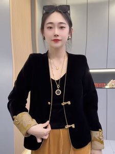 一件代发2025春季新款时尚宽松气质新中式国风盘扣拼色女装外套