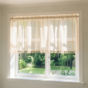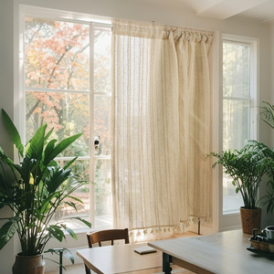 和風シンプルストライプリネンドアカーテンベージュ高級リビングルームベッドルームキッチン書斎フローティングカーテン玄関