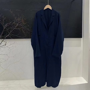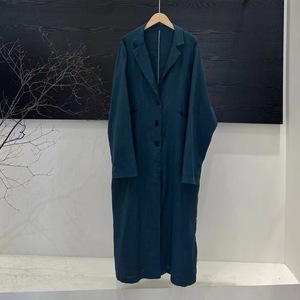 ヘリンボーン柄ミドル丈ウインドブレーカーカジュアルジャケット多用途シンプルビッグバージョンロングコットンリネンラペルボタンウインドブレーカージャケット