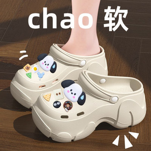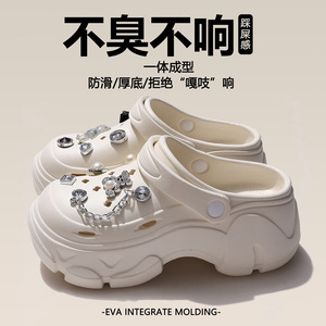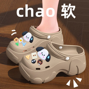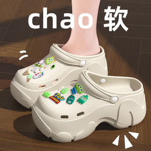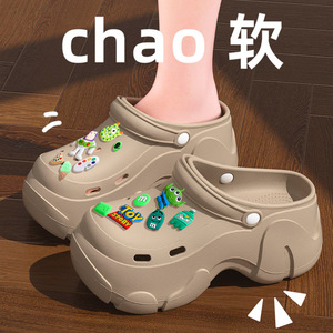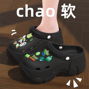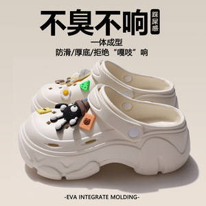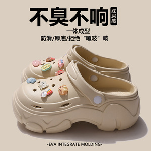 穴の靴の女性のタイプ2025新型の外は夏の厚い底を着て高くなります。