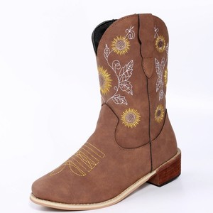 大きいサイズの対外貿易の21項の欧米のファッションのマーティンの靴の女性の太さとハイヒールの丸い頭の刺繍の女性のブーツの卸売り