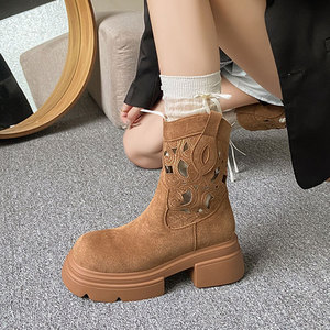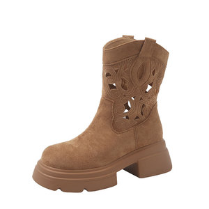 厚底マーティンブーツ女性用 2025 新作夏薄いブラウンメイラードブーツウエスタンカウボーイショートサンダル