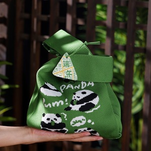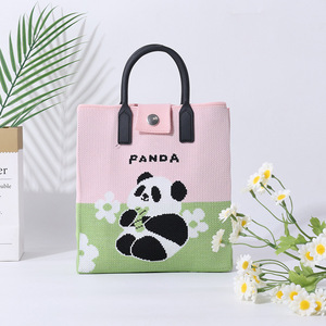 成都パンダのおじいさんは同じタイプの可愛いパンダのカバンとニットのカバンを編みます。