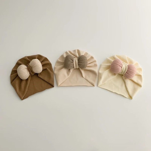 ベビーフードドア帽子韓国風かわいいリボンつば帽子新生児女の子頭保護帽子トレンディ