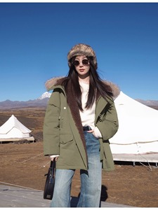 2025冬の超きれいな工装ファッションのパーカーのダウンジャケットの女性の帽子のタヌキの毛の襟の90アヒルの毛のパーカーのコート