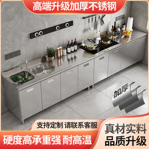 304ステンレスキャビネット特厚家庭用キッチンキャビネット賃貸用水槽全体コンロキャビネット一体